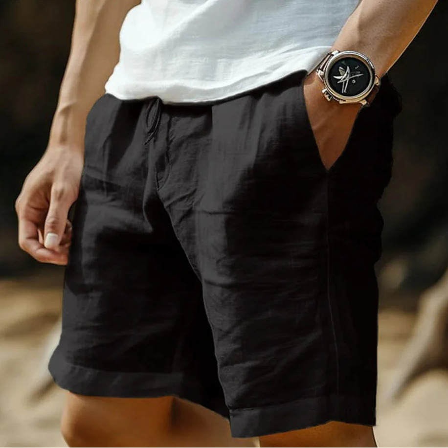 .מכנס קצר קליל בסגנון פשתן עם שרוך.