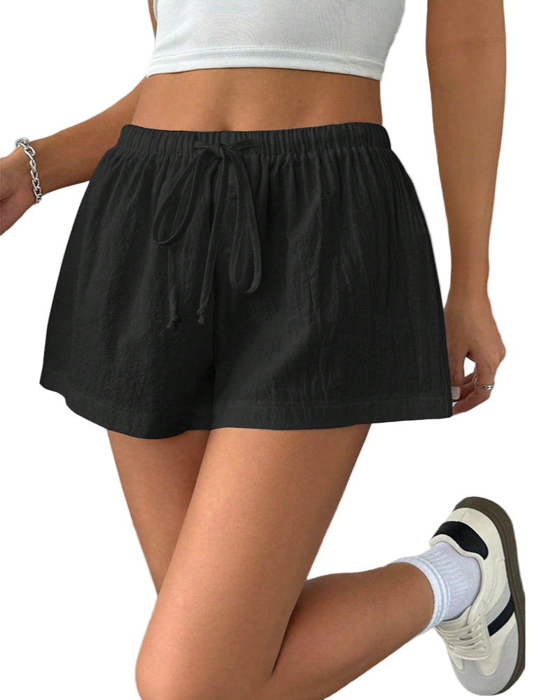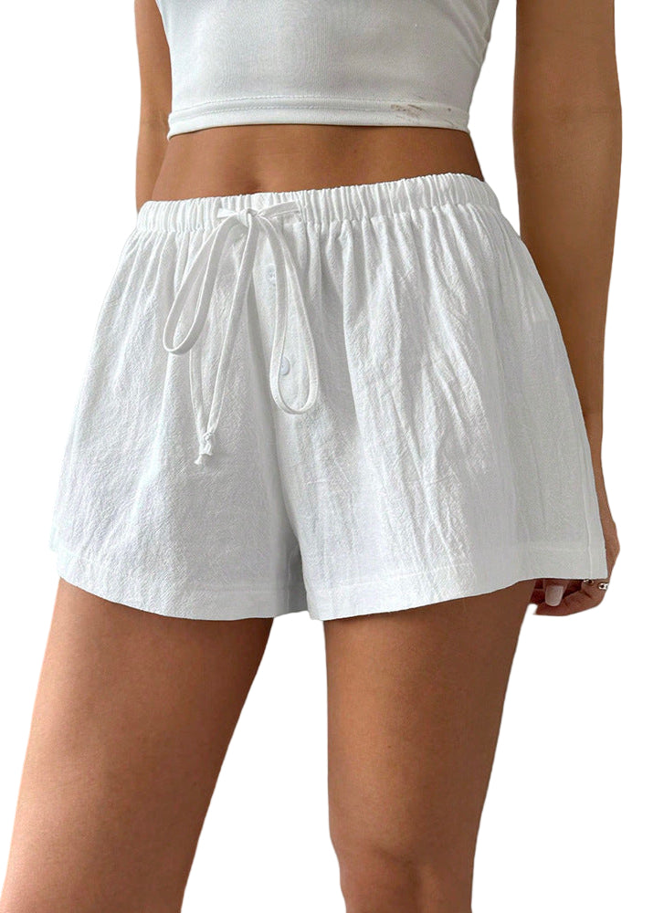 מכנס פסים/חלק עם חבל קשירה בשילוב כפתורים